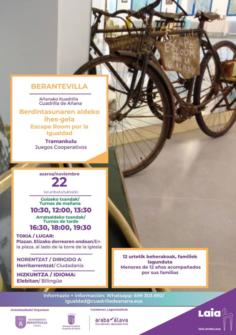 Las inscripciones se hacen a través del servicio de igualdad del ayuntamiento de Berantevilla, enviando WhatsApp al 699303892