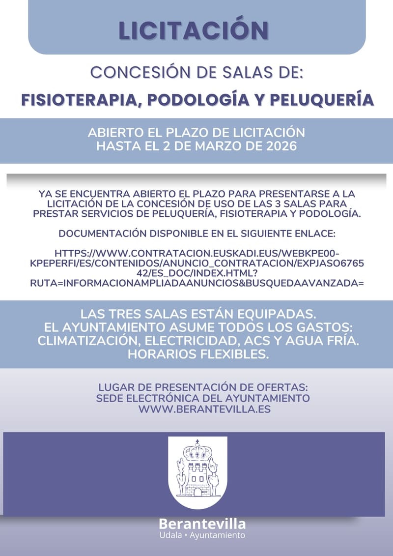 El Ayuntamiento de Berantevilla tiene un servicio de medicina general y de enfermería en el ambulatorio sito en C/ Mayor, 34.
